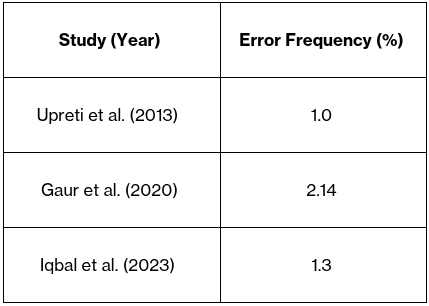 Upreti S, Upreti S, Bansal R, et al. Types and frequency of preanalytical errors in haematology lab. J Clin Diagn Res. 2013;7(11):2491-3. doi:10.7860/JCDR/2013/6399.3587.